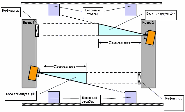 Предотвращение столкновения кранов. Принцип триангуляции в горизонтальной плоскости