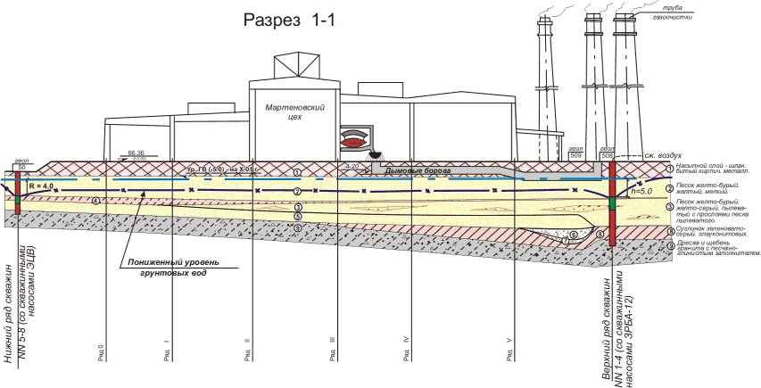 В качестве примера комплексного решения задач водоснабжения и водопонижения на крупном промышленном предприятии предлагаем ознакомится с ресурсосберегающаей системой инженерной защиты от подтопления на ОАО "Нижнеднепровский трубопрокатный завод", разработанной и внедренной нашими специалистами.